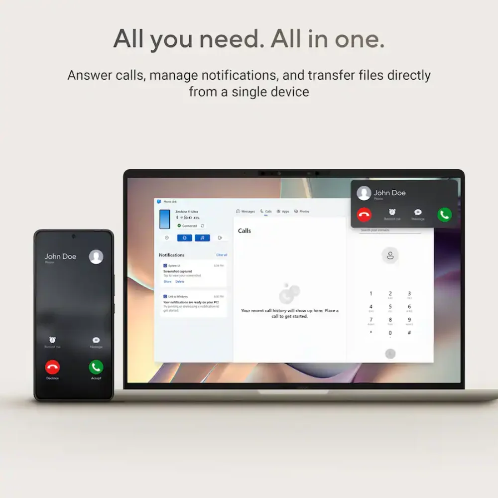 Built by ASUS, the Zenbook A14 (UX3407) keeps things light and refined, while still bringing strong AI performance. It runs on the Snapdragon X Plus processor and includes an NPU rated up to 45 TOPS. That power supports Copilot experiences, AI photo tools, smarter video calls, and upcoming Windows AI features.