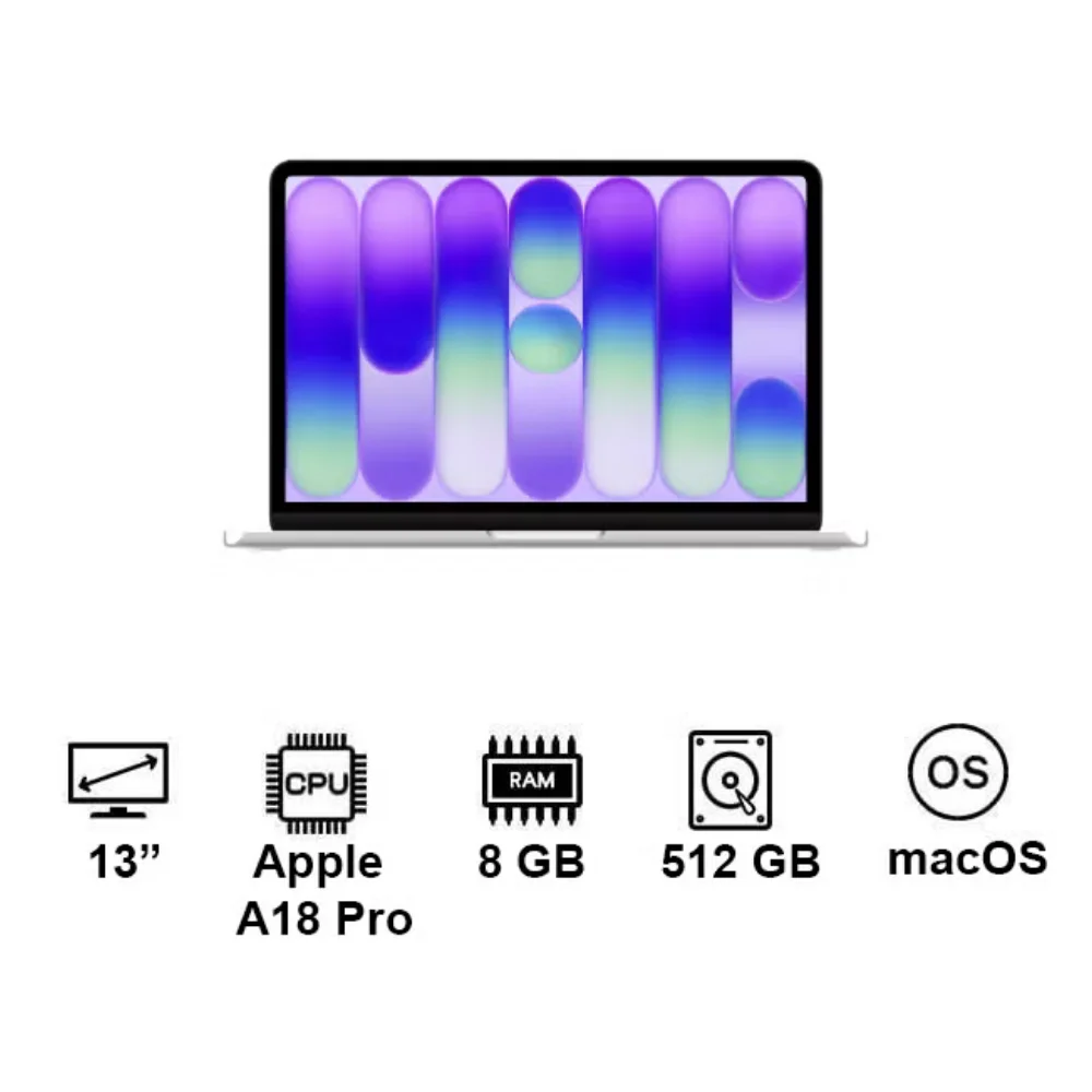 The MacBook Neo 13-inch A18 Pro laptop is designed for users who need a lightweight, efficient, and powerful device for everyday computing. Powered by the advanced A18 Pro chip, this laptop delivers smooth performance with a 6-core CPU, 5-core GPU, and a 16-core Neural Engine, making it ideal for multitasking, productivity, and AI-driven applications.